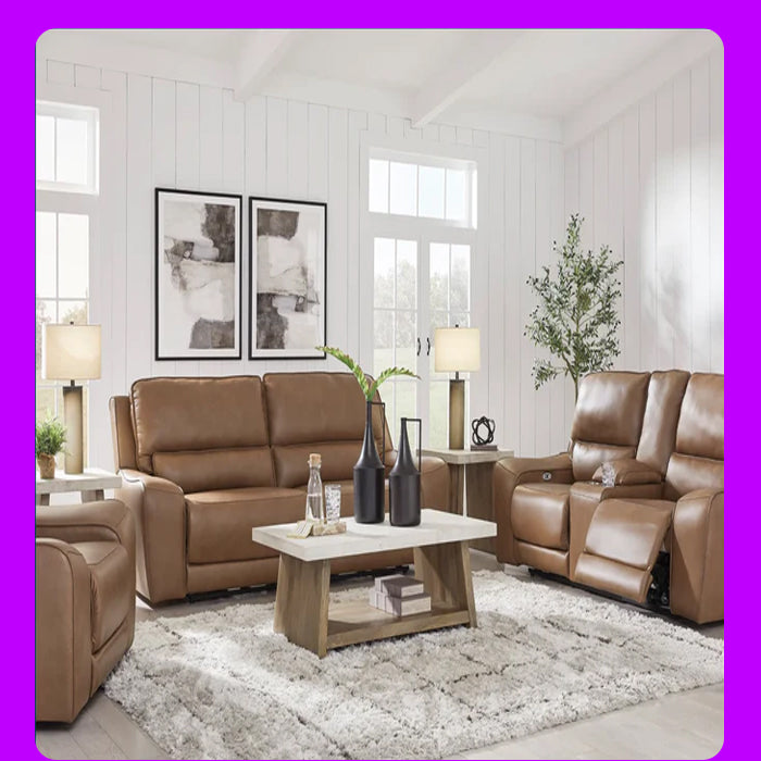 Greenfield Saddle Brown Upholstered Power Reclining Living Room Set