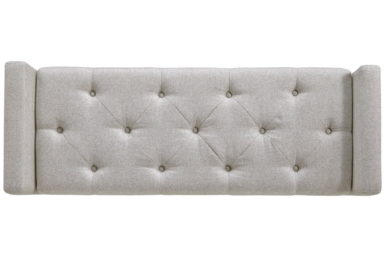 Contemporary style gets practical with this bench. The tufted beige seat cushion is hinged to allow easy access to whatever you need to hide in plain sight. The raised edges give the impression of arms on this cushioned seat while the light brown finished wood legs help it blend with many different modern styles. Briarson Storage Bench to enhance the beauty of your living spaces.