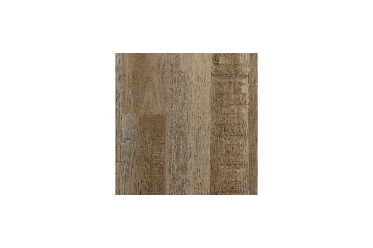 • Butcher block, light brown finish over replicated wood grain