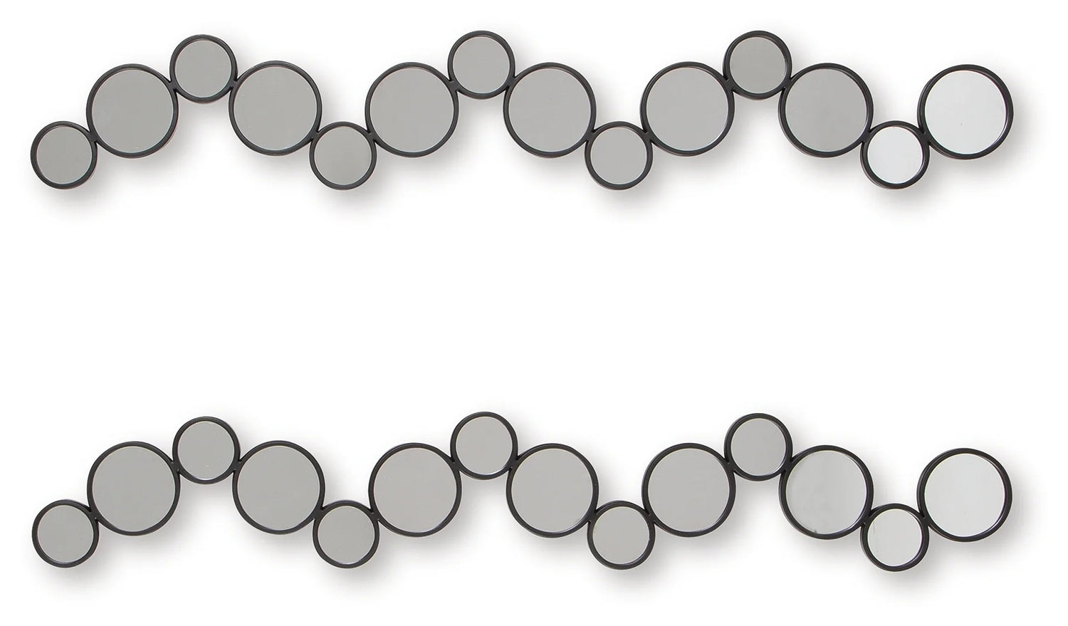 Time to refresh your walls? This accent mirror set is ready to introduce some modern whimsy. A playful arrangement of circular mirrors creates a unique and eye-catching design, while the black frames add a sleek, sophisticated touch. You can hang them four ways—yes, four—to create a custom look that complements your fabulous style. Vinler Accent Mirror Set (Set of 2) to enhance the beauty of your living spaces.
