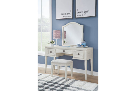 Robbinsdale Antique White Mirrored Vanity with Bench