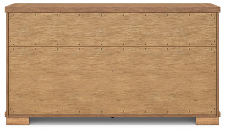 A farmhouse-style buffet or sideboard brings charm and character with distressed wood finishes and vintage-inspired details.
