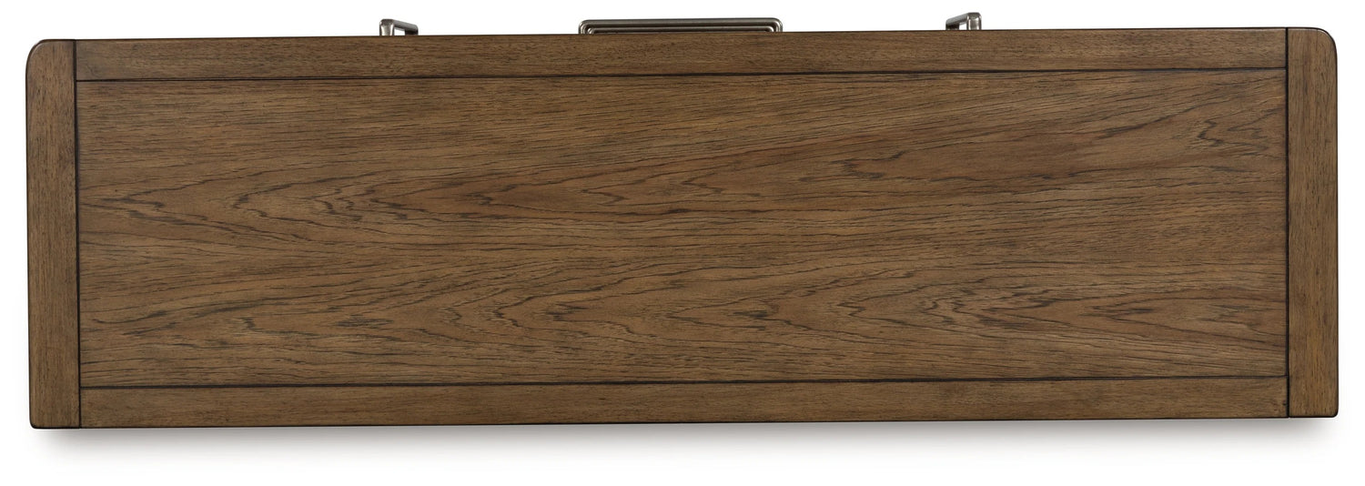 Define your dining room with reliable function and style. This dining server sits comfortably at the intersection of modern lodge and farmhouse aesthetics. Charming architectural elements and a light brown glazed finish reflect your warm and welcoming disposition. Even with its poise, it remains practical, serving up plenty of storage space in its dual cabinets and spacious drawers. Cabalynn Dining Server to enhance the beauty of your living spaces.
