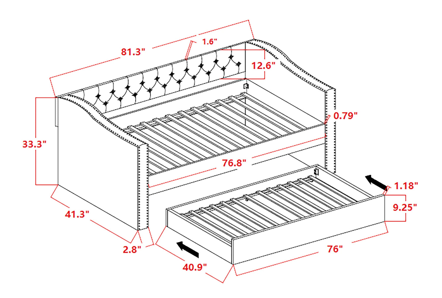 - FRAME: 81.3" X 0.6" X 11.8"H