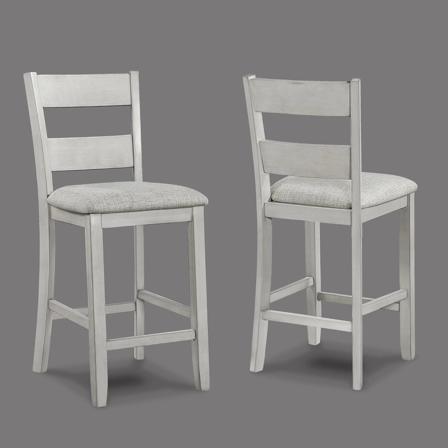 Modern and functional, this dining set features a drift wood finish with a wood-grain tabletop. Paired with matching high stools that have upholstered seats, this ensemble offers a clean, streamlined look suitable for any contemporary setting. Built for durability and designed for simplicity, it's an ideal choice for everyday dining