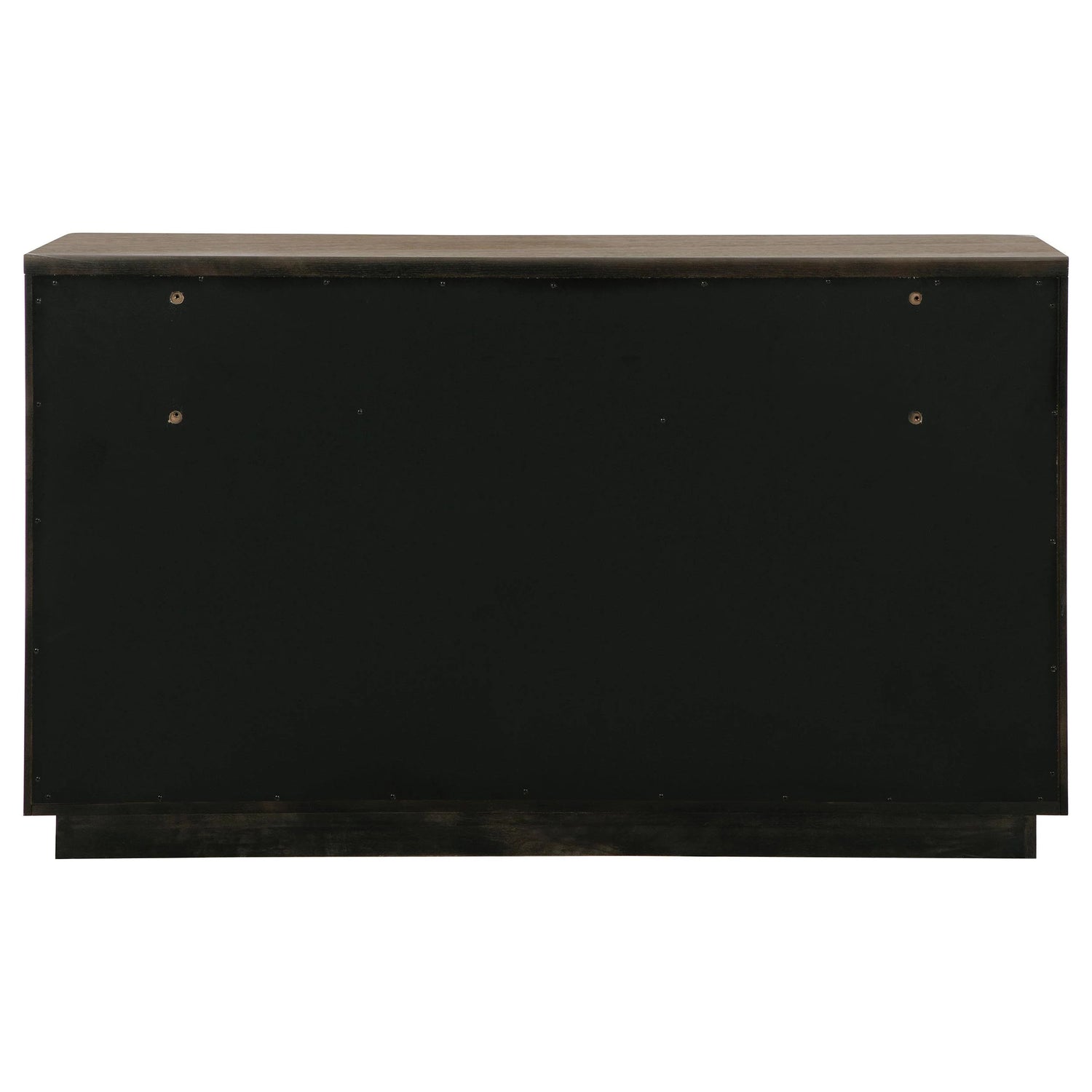 Add a stylish platform for decor and ample storage for clothing with a modern six-drawer dresser. Crafted with a cool ash brown wood grain finish, the dresser features decorative drawer fronts that turn it into a true show piece in your bedroom. Drawer fronts are subtly shaped and paired with vertical fluting that creates chic depth in an artful presentation. Thick bar pulls are turned vertical, echoing the elegant lines of the piece. Its wide top is just right for a jewelry box and decor, offering a personalized ambiance to your bedroom.