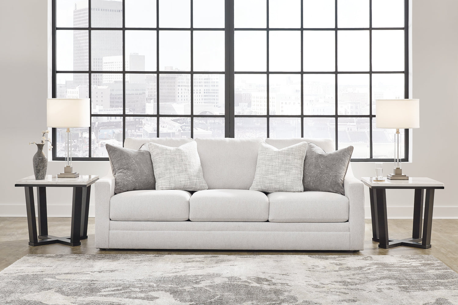 Clean lines and a streamlined silhouette define the architectural attitude of this sofa. Textured accent pillows in complementary colors add subtle contrast, while plush reversible cushions beckon your body to sit down, get comfy and relax completely. — Maitelynn Sofa to enhance the beauty of your living spaces.