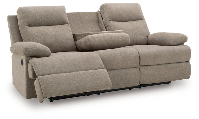 Side-Swipe Mocha Reclining Sofa with Drop Down Table