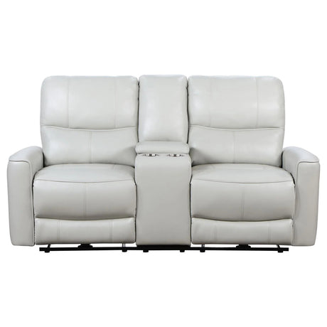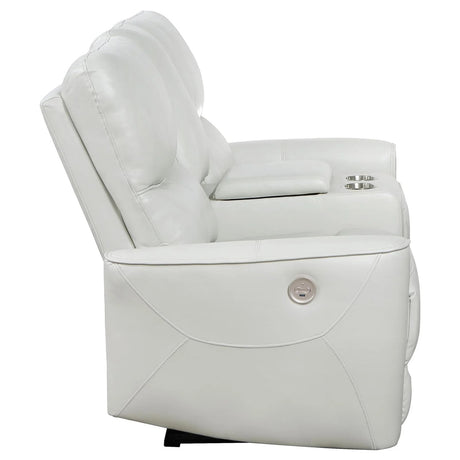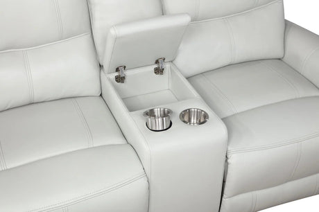 Greenfield Ivory Upholstered Power Reclining Loveseat with Console