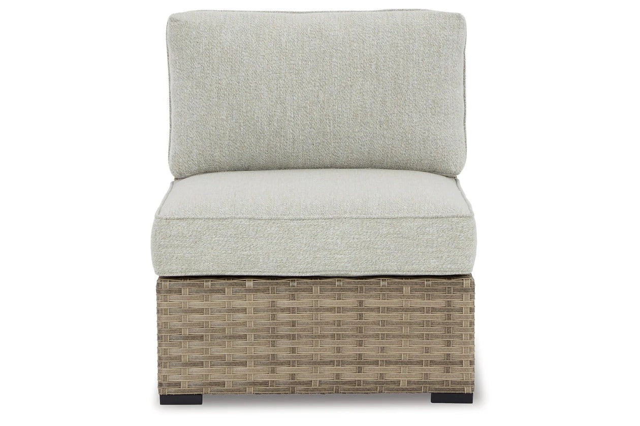 Calworth Beige Outdoor Armless Chair with Cushion