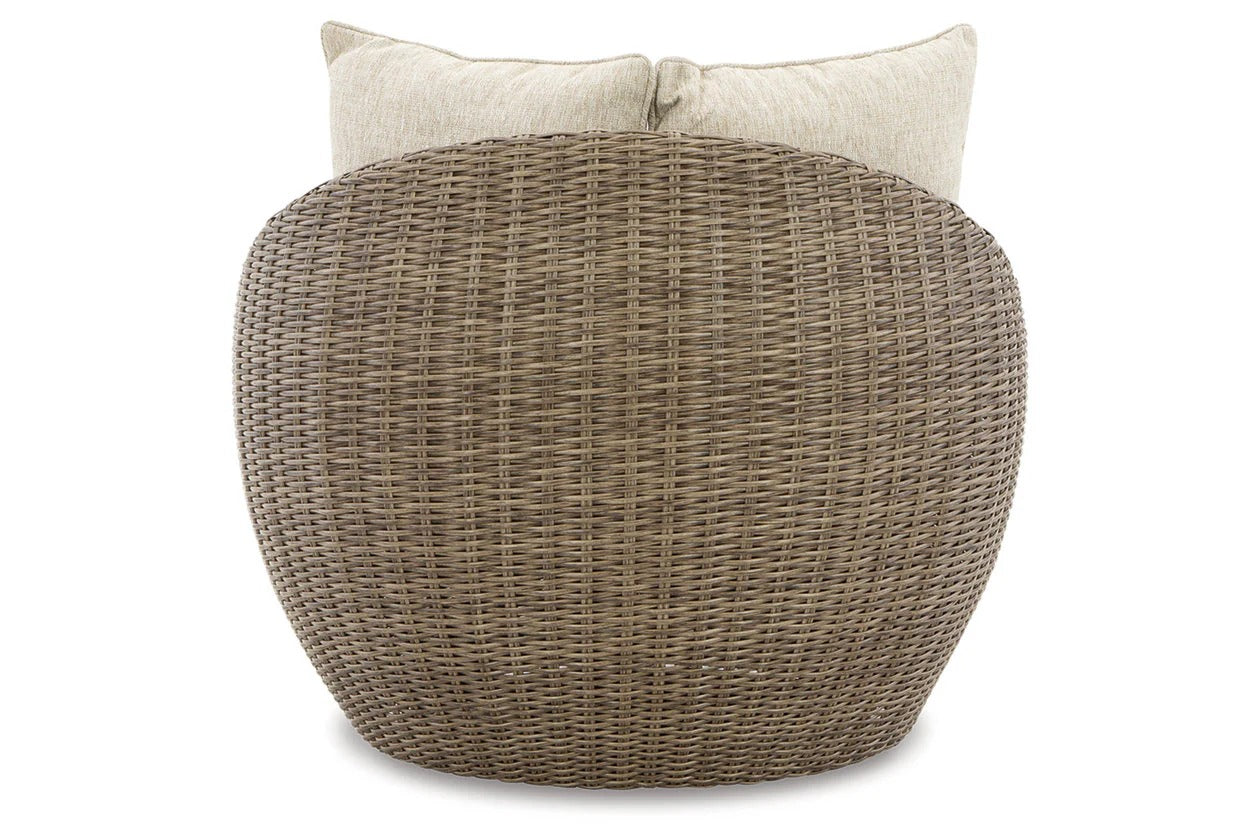 This swivel lounge chair completes your outdoor seating area with its fresh take on casual comfort. Handwoven resin wicker over a curving aluminum frame balances streamlined style and exceptional durability. High-performance beige Nuvella+™ fabric wraps the seat and back cushions, protecting against the natural elements. —introduces Danson Swivel Lounge with Cushion (Set of 2) to enhance the beauty of your living spaces.