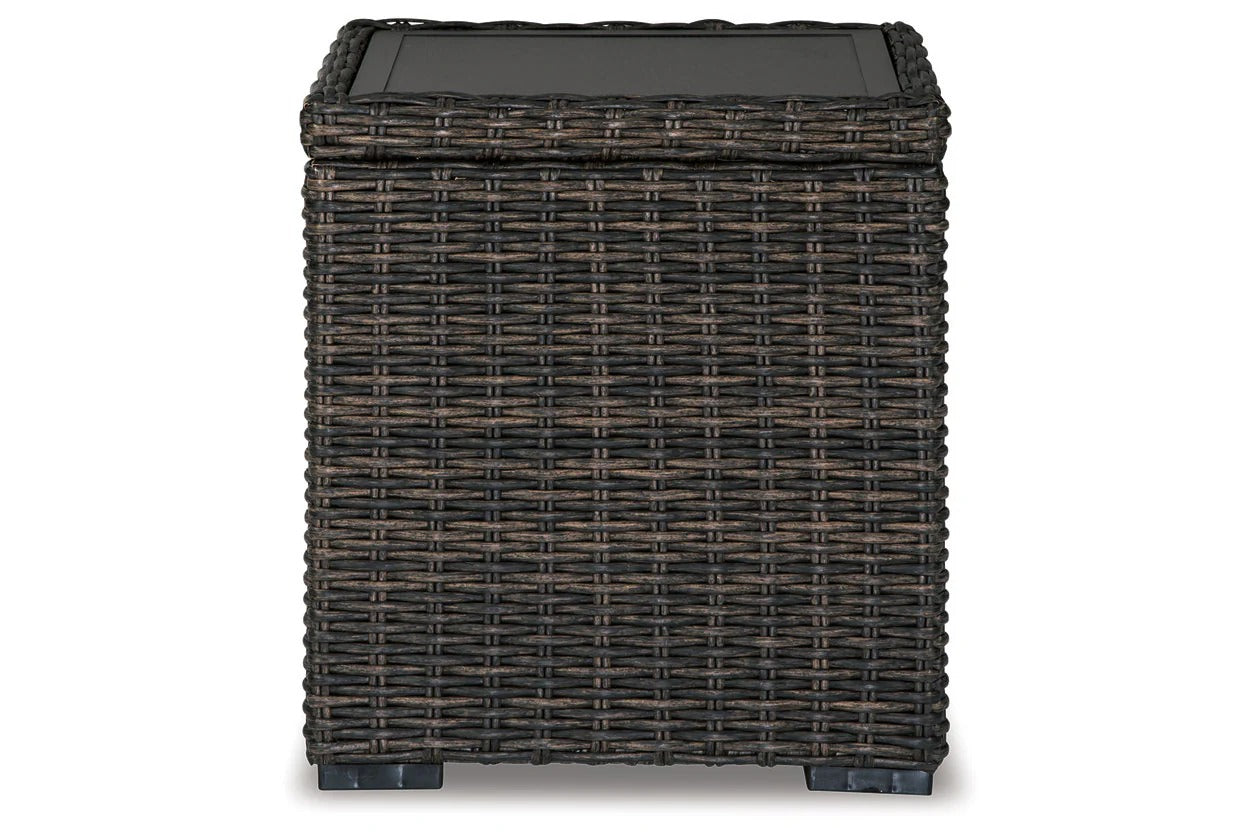 Style. Comfort. Quality. Value. This outdoor end table really goes to town, giving you the total package for outstanding outdoor living. Crafted to withstand the elements, this outdoor table’s resin wicker base and rust-proof aluminum frame ensures carefree living, while the aluminum surfaces provide stylish appeal. Cool, clean lined and casual, it's perfect for use inside or out. —introduces Grasson Lane End Table to enhance the beauty of your living spaces.
