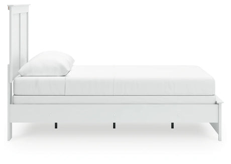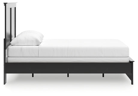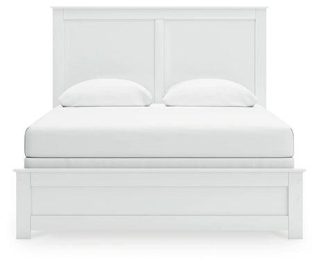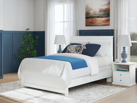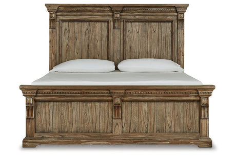 A farmhouse-style queen bed features natural wood finishes and vintage-inspired charm, bringing a cozy touch to your space.