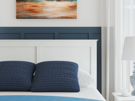 💡 Tip: Opt for a wood-paneled headboard for a classic farmhouse look.