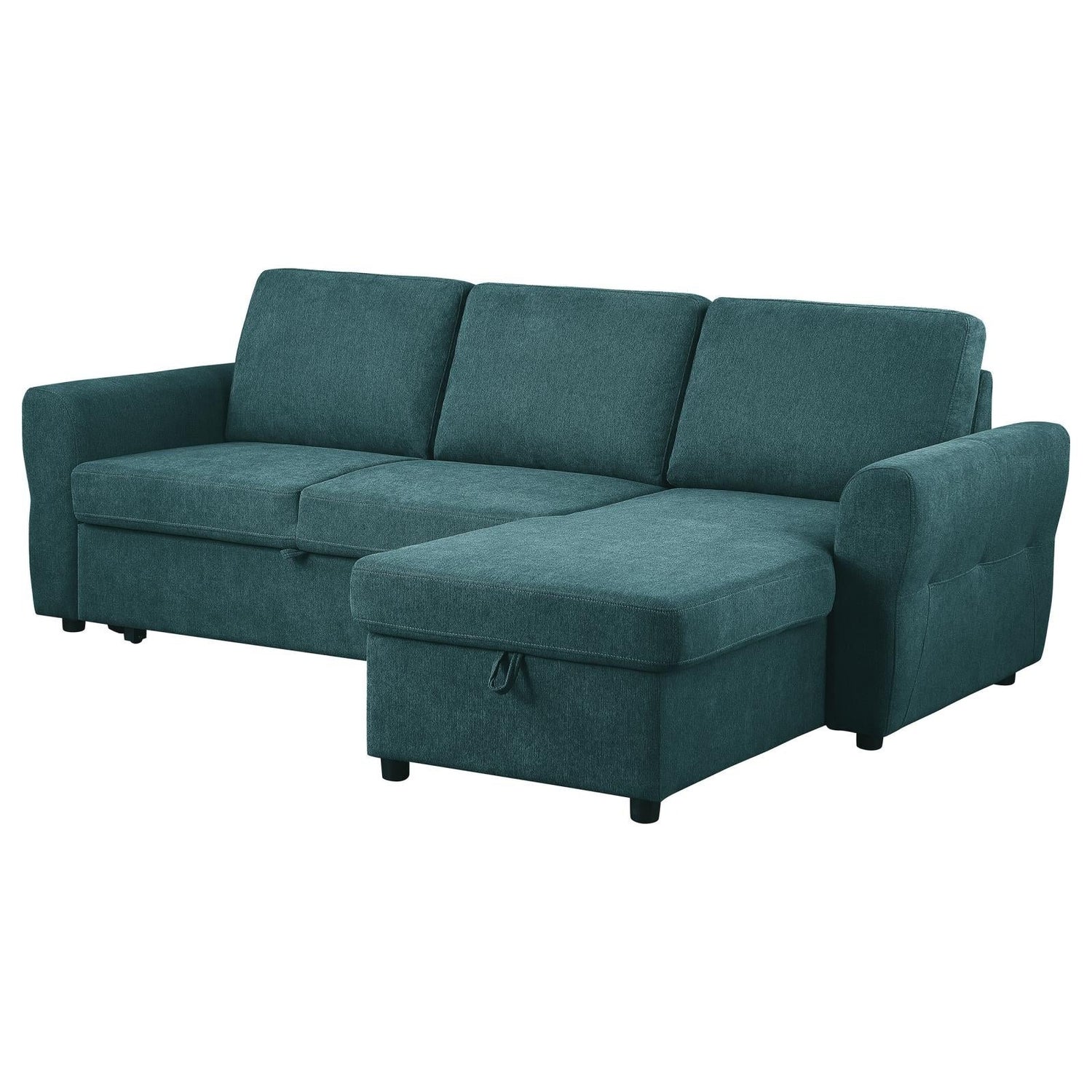 Samantha Teal Blue Upholstered Sleeper Sofa Sectional with Storage Chaise