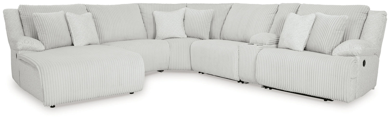 Includes 5 pieces: left-arm facing recliner, armless recliner, armless chair, wedge and right-arm facing recliner
