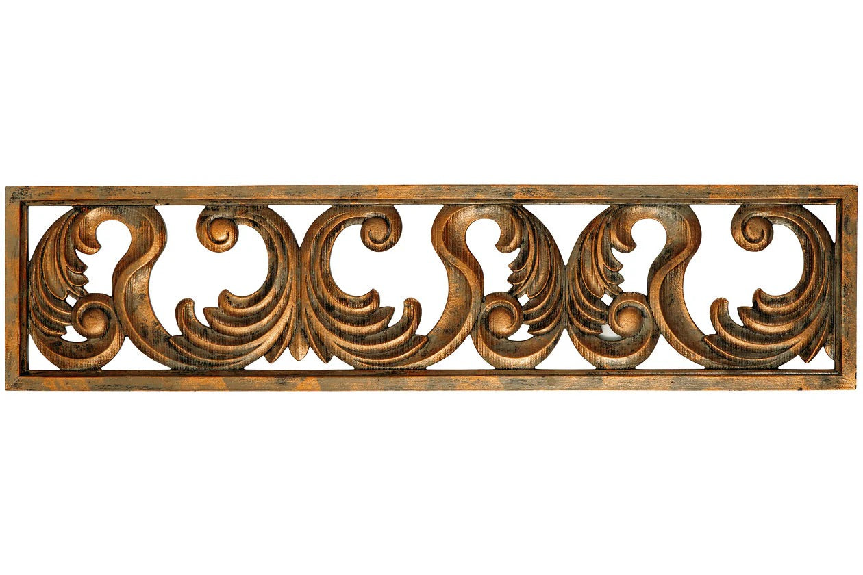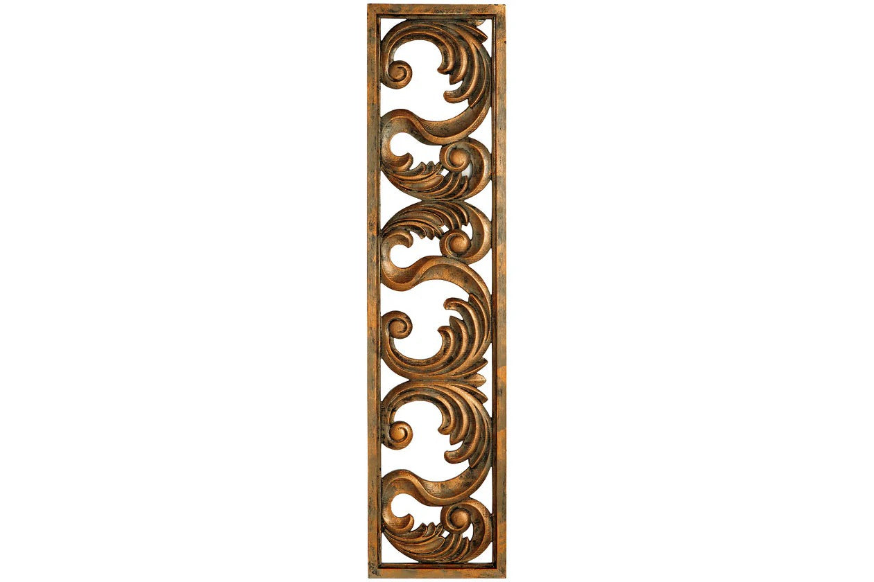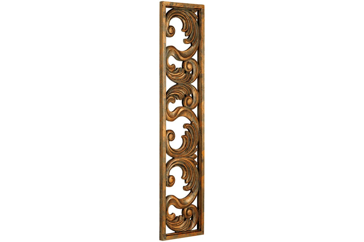Grace your home with an epic, expensive feel without breaking the bank. This wall sculpture's stately scrollwork design is dressed in an antiqued goldtone finish. Hang it in your entryway to set a tasteful tone, or place it next to picture frames on a gallery wall to create a polished and poised look. Candelario Wall Decor to enhance the beauty of your living spaces.