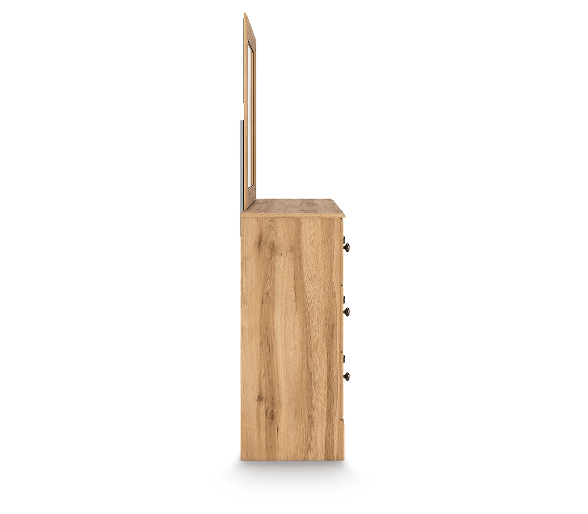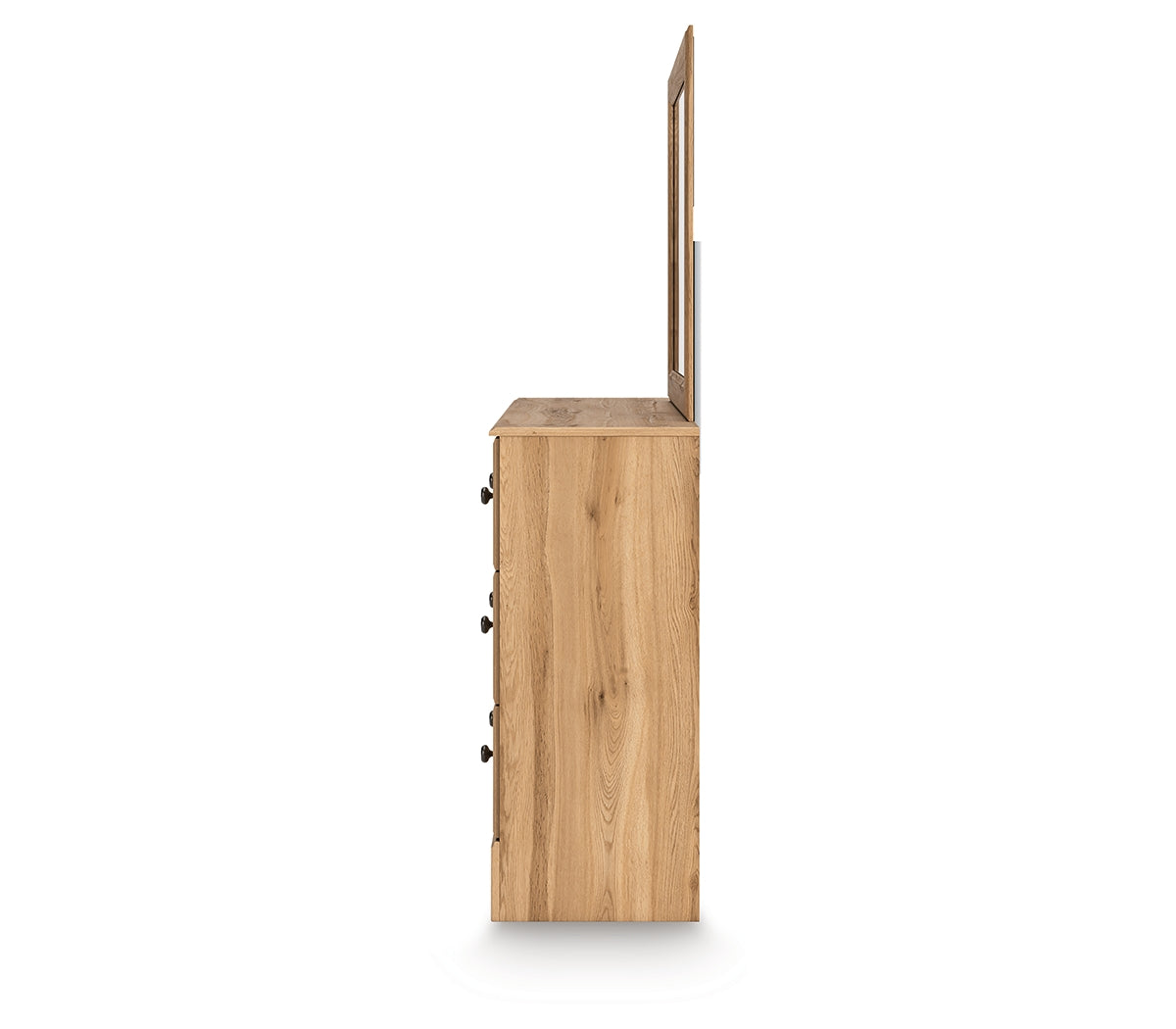 Country rustic. Vintage inspired. However you see it, you’re sure to be charmed by this dresser with mirror. Adorned with chic drawer knobs and a warm oak grain finish, it offers a relaxed mix of picturesque aesthetics. Its storage space gracefully welcomes clothes, linens and other bedroom necessities. With an air of easygoing elegance, this set lets you drift away to a simpler time and place.